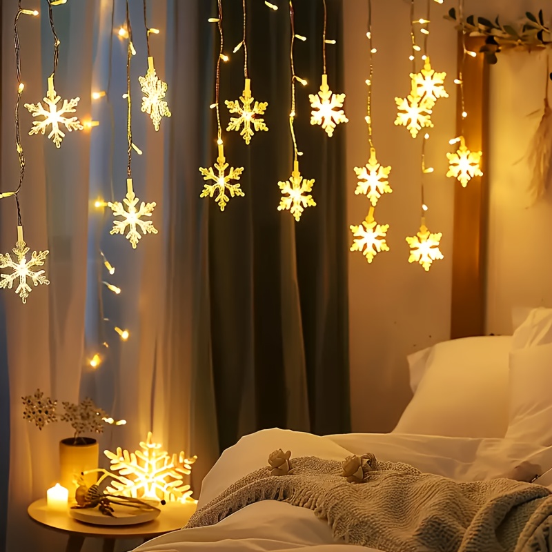 Light String 1pc YETHKE Snowflake Curtain Light, 96 LED USB Powered Fairy with 8 Modes